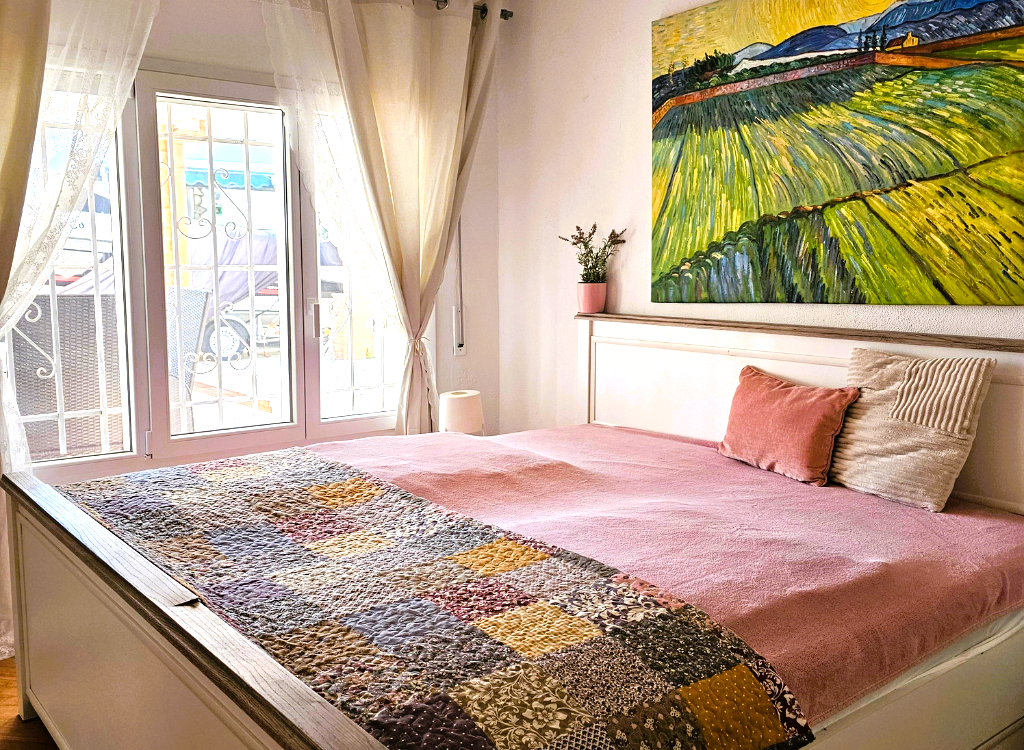 - Ein Schlafzimmer mit Doppelbett (180cm/200cm,1 Matratze) und Kleiderschrank, Fenster mit Fliegengitter und Klimaanlage.