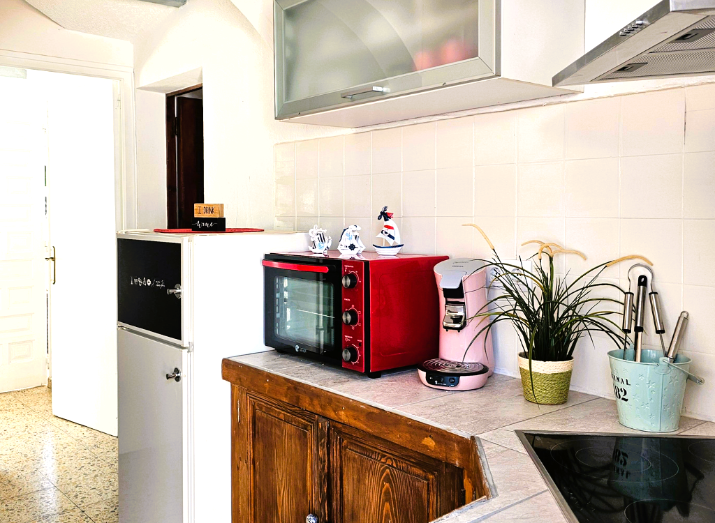 - Küche mit Cerankochfeld, kleiner Backofen, Kühl-Gefrierkombination, Spülmaschine etc.